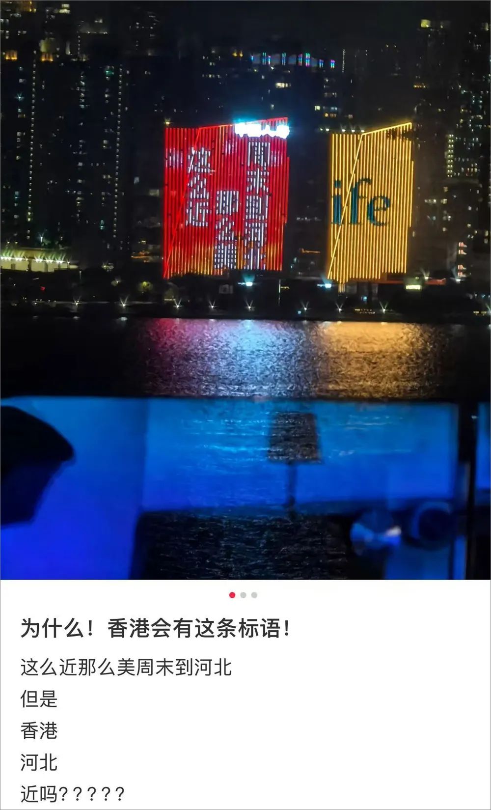 在官方推动下,“周末到河北”不仅投放到了北京,还跟随高铁列车跑遍全国,甚至登上香港维多利亚港边的大楼显示屏,出现在了日本大阪世博会。