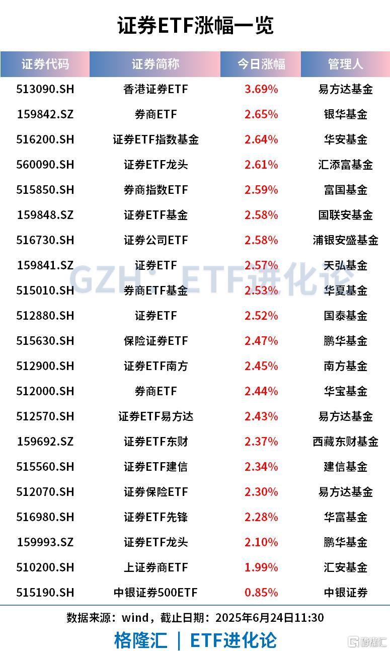 大爆发的牛市旗手,香港证券ETF、券商ETF、证券ETF大幅上涨