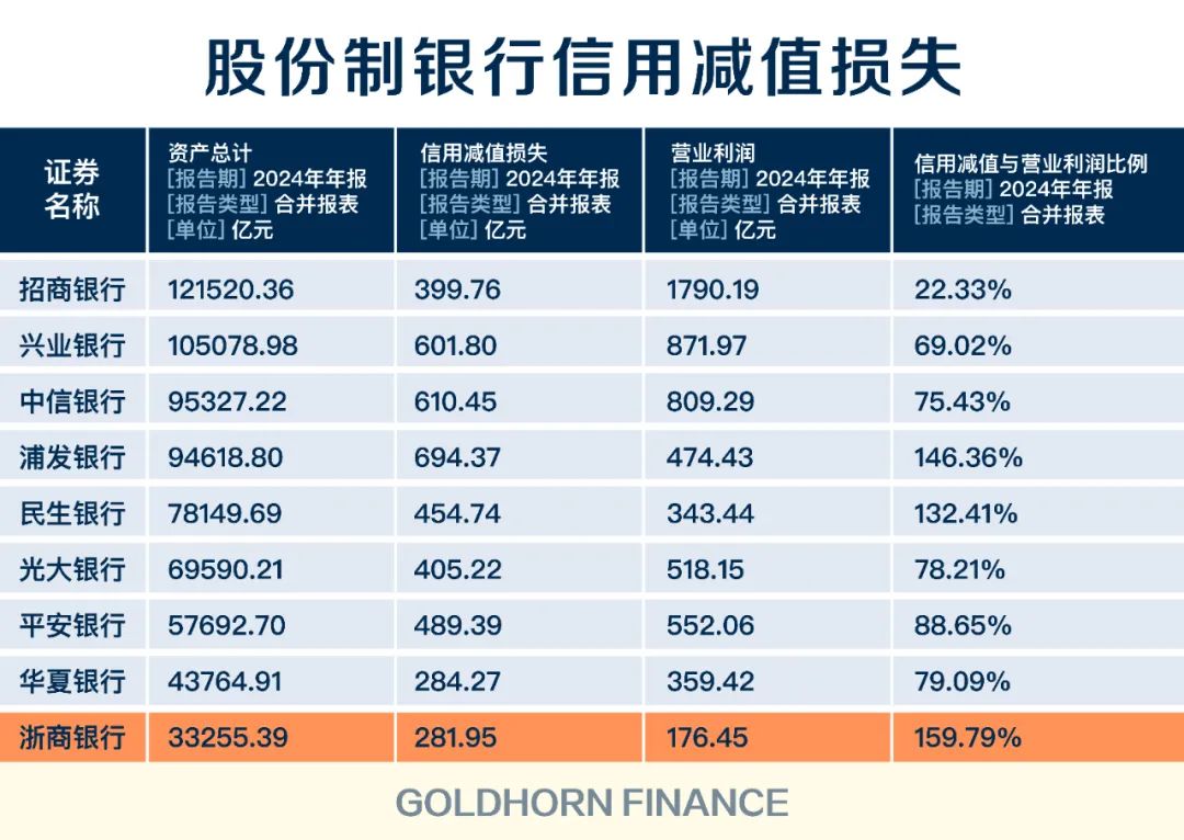 但是信用减值损失的数字仍然在呼唤痛苦。规模连续第五年突破200亿元,2020-2024年达到1269.58亿元,达到281.95亿元。这是什么概念?在a股上市银行,如江阴银行、苏农银行、张家港银行等。,总资产只有2000多亿,这意味着浙商银行在过去的五年里,仅仅因为“信用减值”就亏损了一半以上的上市银行。