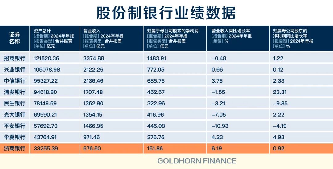 将镜头拉到上市股份制银行的全景画面上,浙商银行的处境更加微妙。