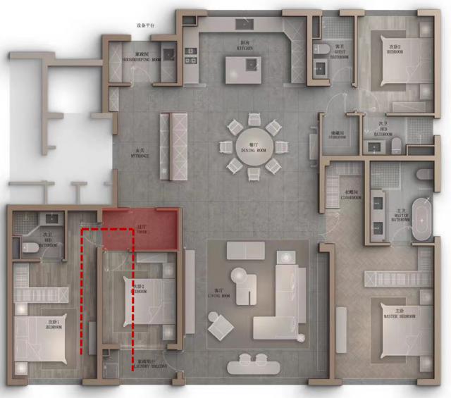 如果有足够的客卧面积作为真正的房间使用,功能也随之变化