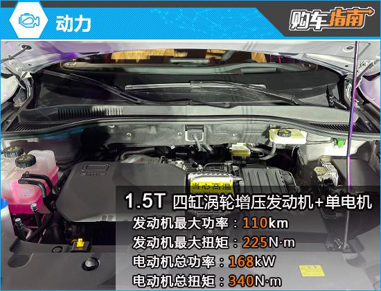动力方面,悦意 07 搭载 1.5T 发动机 由电机组成的插电式混合动力系统,CLTC 最低荷电状态油耗仅为 3.88L/100km,CLTC 最大的综合续航里程可以达到 1555km。