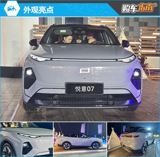 悦意 07 侧面线条动感流畅,车门设置两条腰线,改善整车姿势。车尾采用贯穿式尾灯,与正面相呼应,内部增加黑化处理,点亮后非常时尚。