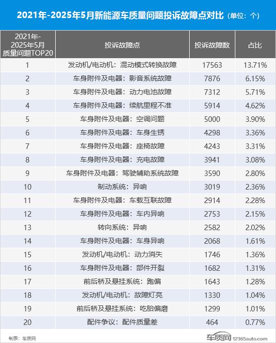从近 5 根据2008年新能源汽车质量问题投诉故障点,“动力电池故障”和“续航里程不准”两种与新能源汽车行驶相关的问题投诉故障排名前列,两者的总比例之和超过总数。 10%。其中,前者的投诉集中体现在电池“压差大”、“严重衰减”、还有“动力电池限制”等等。来自桂林的李女士向车质网反馈,她购买了一辆新动力品牌的车,刚刚开车。 8000 多公里后发现电池存在“压差大”的问题,远远超出标准范围,2000。 续航只能达到几十公里,严重影响日常使用。