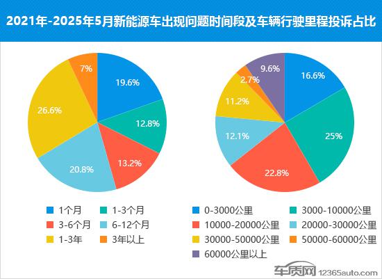 靠近新能源汽车 5 每年出现质量问题的时间段比例来看,买车 12 一个月内出现的问题占总数的比例超过 6 成。就车辆行驶里程的维度而言,超过 4 而且成车不到 10000 质量问题在公里内出现。从以上数据不难看出,大部分新能源车型在新车阶段开始出现一些质量问题,这也反映出一些车企在质量控制方面存在一些问题,亟待改进。