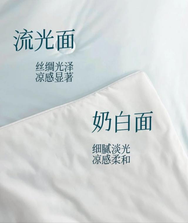 更加贴心的是,品牌还为这张床做了一种流光凉爽的感觉。「两面面料睡感设计」,一床被子,两种睡眠感觉——