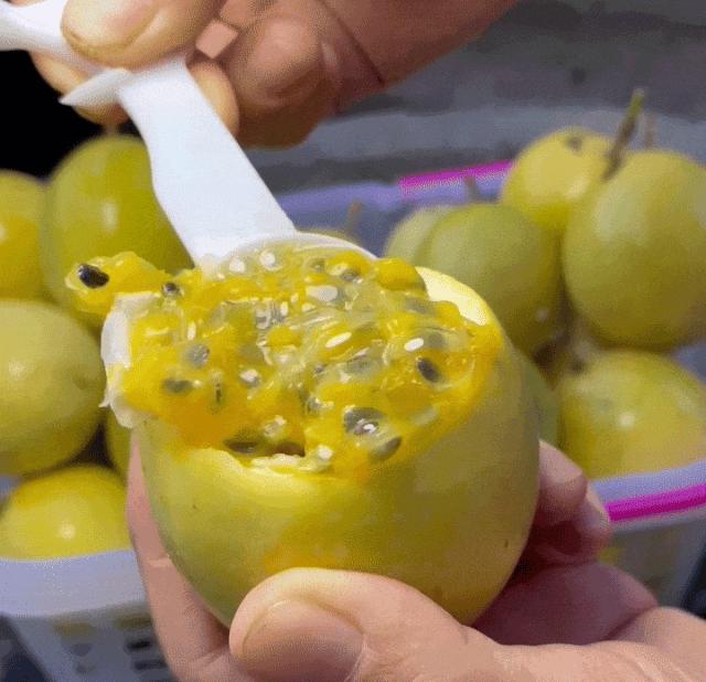 与传统紫果不同,它是酸的,8 分清甜、2 分微酸金色比例,温暖的阳光和温柔的雨露,在舌尖奏响一首热带风味的交响诗。