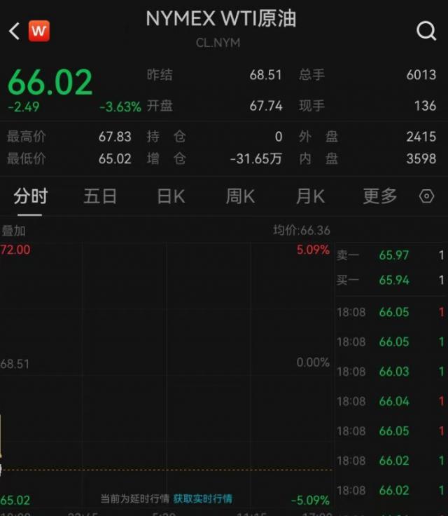 根据新华社的报道,美国东部时间 6 月 23 当天晚上,美国总统特朗普在社交平台上宣布,以色列和伊朗已经就“全面完全停火”达成协议,这场比赛持续了很久。 12 天空矛盾即将结束。受此影响,美国国际油价大幅下跌, WTI 石油期货亚洲市场首次下跌超过一度 5%,截至 6 月 24 日,跌幅收窄至 3.63%,报 66.02 美金 / 桶。