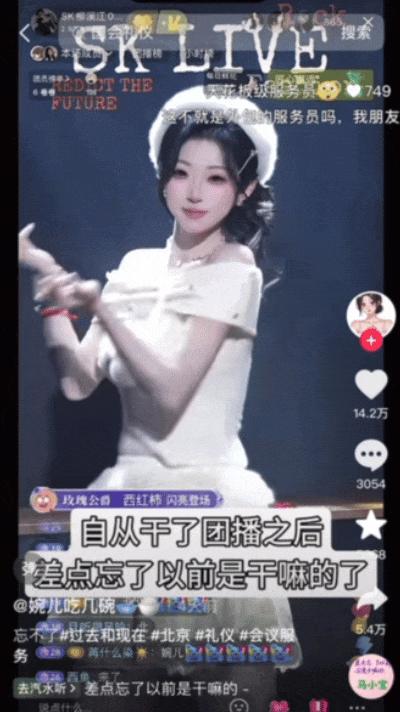 视频开头是正在跳舞的团播主播。背景音乐节奏强烈,灯光耀眼,弹幕和赞不断刷新。然后镜头一转,画面中就有医生、国会礼仪、舞蹈演员等职业工作片段,字幕就打出来了。"差点忘了我在干团播之前做了什么"。