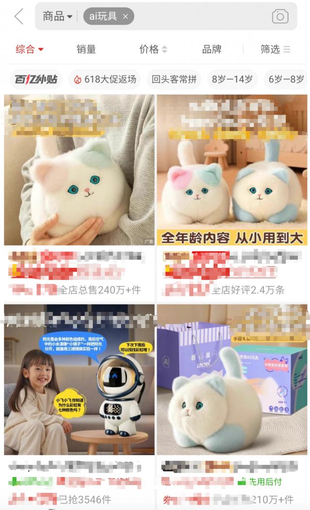 某宝、某多上价是多上价。 100 元左右的 AI 玩具的销量可以超过1000,有些店铺的销量可以达到3-4万。