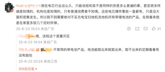 微博评论区也有自称是锂电池供应链从业者的消息透露,这样在通过认证后“以次充好”的情况甚至是正常的。