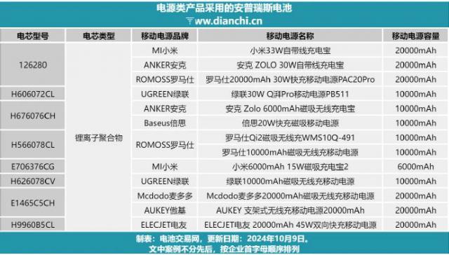 此外,根据电池交易网络的整理,截至 2024 年 10 月份,选择安普瑞斯电池公司,包括小米、安克、罗马仕、绿联、倍思等知名品牌,对应的基本都是市场上最畅销的商品。