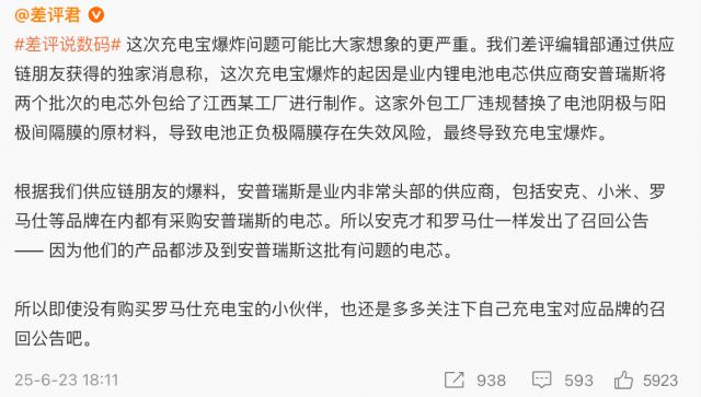 这个问题一下子就大了。看来充电宝的问题远不止罗马仕和安克。然而,安普瑞斯是中美合资企业的国际供应链制造商。做了这么多年电池,从来没见过什么大问题。这次怎么会有核弹级别的大事故?