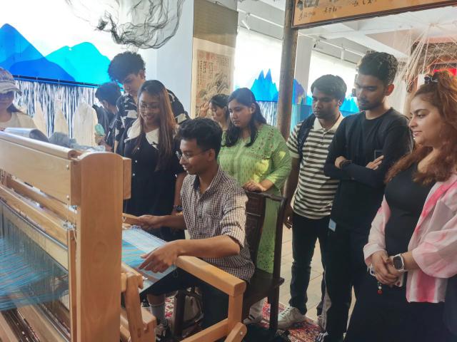 “今天,我很荣幸能来到这里。我不仅看到了很多提花作品,还亲身体验了传统的手工织机,对中国的纺织技术有了深刻的了解,感觉很有意思。”来自摩洛哥的 Hiba 兴奋地说。学生们还走进企业生产线,了解提花面料、现代纺织设备和工艺。来自孟加拉国的学生子安说,从课堂进入车间是一个极其难得的学习机会,收获很多。