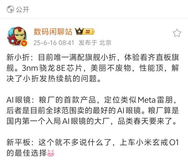 6 月 25 明天晚上的日消息 19 点,小米科技园将迎来一场定义未来的新闻发布会。除了小米。 YU7 除了汽车和折叠手机,一个神秘的产品——小米的第一款真正的小米产品——面向下一个时代的个人智能产品。 AI 正式宣布智能眼镜出现。