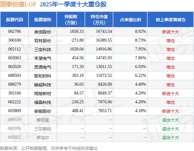 根据 2025 基金 Q1 季度公募基金重仓股数据,重仓公募基金共同基金 19 家庭,其中持有最多的公募基金是国泰基金国泰估值 LOF。国泰估值 LOF 目前规模为 9.71 最新净值亿元 3.1167(6 月 24 日期),较前一交易日上涨。 在过去的一年里,3.17%上升 34.98%。公募基金现任基金经理为王兆祥。