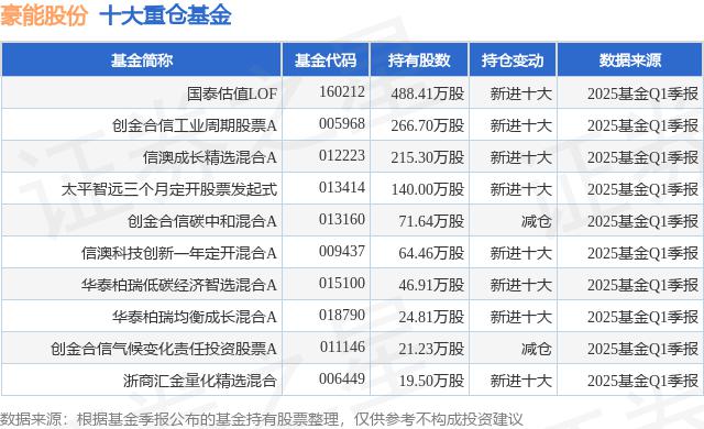 请参见下表,重仓豪能股份前十大公募基金: