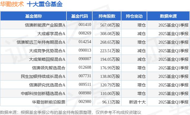 六月二十五日,华勤技术上涨5.08%,信澳新能源产业a基金重仓此股。
