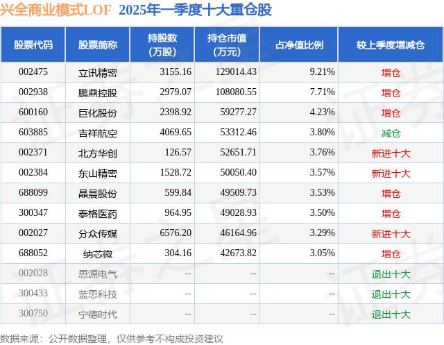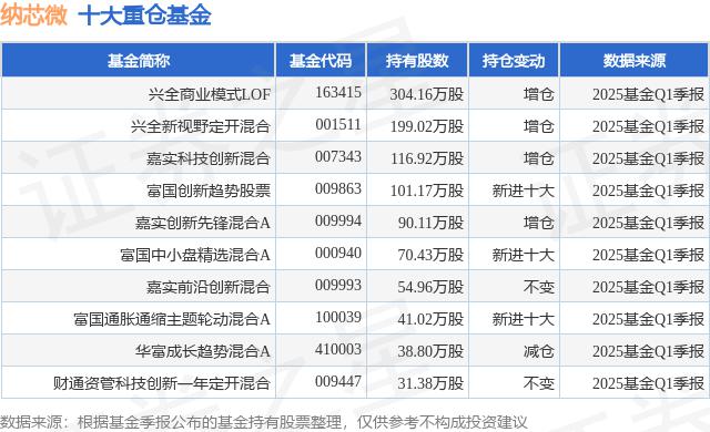 根据 2025 基金 Q1 季度公募基金重仓股数据,重仓公募基金共同基金 46 家庭,其中持有最多的公募基金是兴证全球基金的兴全商业模式 LOF。兴全商业模式 LOF 目前规模为 140.12 最新净值亿元 3.457(6 月 24 日期),较前一交易日上涨。 在过去的一年里,0.99%上升 12.28%。公募基金现任基金经理为乔迁。在任乔迁的基金产品包括 : 新的视野定开混合,管理时间为 2021 年 10 月 20 到目前为止,期间收益率为 -5.67%。