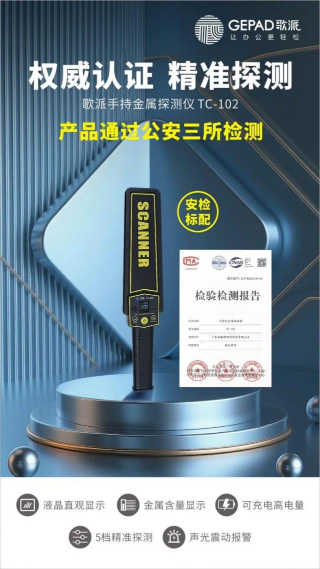 考场的安检工作需要对考生进行全面细致的检查,而歌派手持金属探测器是安检人员近距离、精细化检查的有效工具。 歌派手持金属探测器内置大规模感应线圈,可以快速准确地检测出考生携带的金属物品。检测金属和违禁品时,会有光控和振动报警的双重提醒,让考试安检人员及时发现和处理问题。商品已经通过了公安三所检验,权威认证!