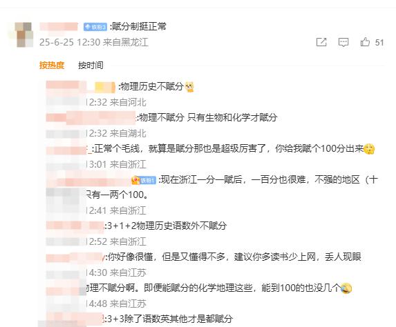 有些网民可能对此非常酸痛,发表评论:“赋分制很正常”。