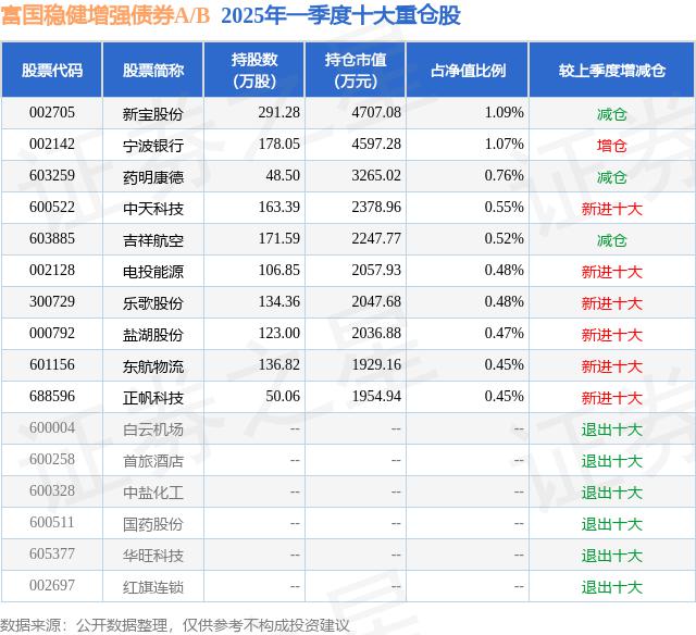 根据 2025 基金 Q1 季度公募基金重仓股数据,重仓公募基金共同基金 12 家庭,其中持有最多的公募基金是富国基金的富国稳步增强债券 A/B。富裕国家稳步增强债券 A/B 目前规模为 30.33 最新净值亿元 1.303(6 月 24 日期),较前一交易日上涨。 近一年来,0.15%上涨 5.93%。目前公募基金的基金经理是俞晓斌。在任俞晓斌的基金产品包括 : 富国泰利定开债发起式,管理时间为 2016 年 12 月 30 到目前为止,期间收益率为 48.08%;财富两年期理财债券 A,管理时间为 2018 年 12 月 14 到目前为止,期间收益率为 22.56%;富国天盈债券 ( LOF ) C,管理时间为 2019 年 3 月 13 到目前为止,期间收益率为 26.96%。
