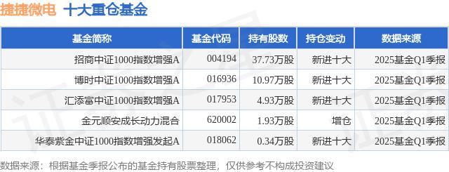 重仓捷捷微电的公募基金请参见下表: