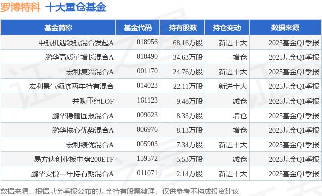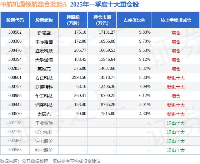 根据 2025 基金 Q1 季度公募基金重仓股数据,重仓公募基金共同基金 13 家庭,其中持有最多的公募基金是中航基金中航机遇领航混合发起的公募基金 A。中航机遇领航混合发起 A 目前规模为 0.98 最新净值亿元 1.4817(6 月 24 日期),较前一交易日下跌 近一年来,0.72%上涨。 35.44%。目前公募基金的基金经理是韩浩。在任韩浩的基金产品包括 : 中航国防与民用技术融合优选 A,管理时间为 2018 年 2 月 9 到目前为止,期间收益率为 34.1%;中航新航空灵活配置混合配置 A,管理时间为 2018 年 4 月 23 到目前为止,期间收益率为 -39.0%;中航华证商飞高端制造业指数发起 A,管理时间为 2023 年 3 月 7 到目前为止,期间收益率为 -11.36%;