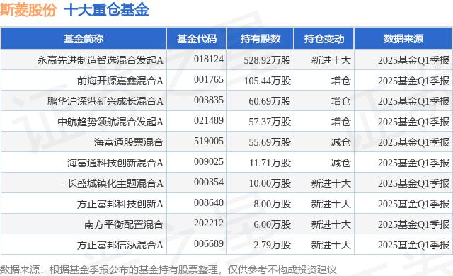 重仓斯菱股权前十大公募基金请参见下表: