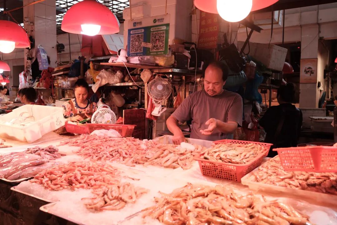 “禁渔期是海鲜人的‘淡季’,但我们的新鲜度永远不会打折扣。”杨师傅和他的妻子是花园市场的老摊主。市场建成后不久,他们就来了。“钓鱼的时候,我们凌晨三点去温岭松门。渔船一靠岸,我们就踩湿甲板挑货,都很新鲜。”在他的摊位上,依次排除了红头虾、鹰爪虾等五六种类型。即使在禁渔期,我们仍然可以依靠丰富的品类来留住老顾客。