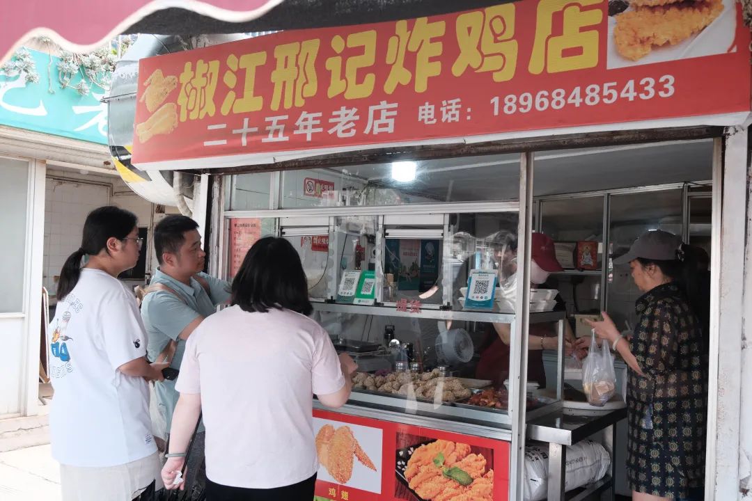 邢记炸鸡的油锅里,金黄的鸡块欢快地滚动着,香味随风钻进人的鼻腔。老邢夫妇来自安徽芜湖,2020年初到椒江时,由于顾忌赔钱,只在花园菜场门口支起小摊。没有想到,这种独特的风味迅速俘获了大众的味蕾。伴随着生意的日益繁荣,加上政府政策的支持,他们终于拥有了自己的店面。他说:“我家就专注于做这5件事,实价,孩子不欺骗!"老邢的话充满了骄傲。