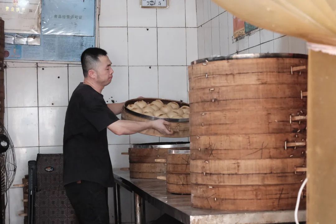"老板,来5个板油馒头,一个现吃,其它包装。“刚出炉的馒头还是热的。当它们被打碎时,油亮的糖汁被板油丁包裹着,倒出来。撕下柔韧的皮肤,蘸上甜浆。舌尖爆裂时,酥脆柔软。白水洋海波馒头店前,来买馒头的顾客络绎不绝。店里总共只卖4种馒头,价格从1元到2元不等,其中板油馒头特别受欢迎。老板海波,是地地道道的白水洋人。"只有台州才能吃到板油馒头,我们的馒头和北方的不一样,味道柔和。”