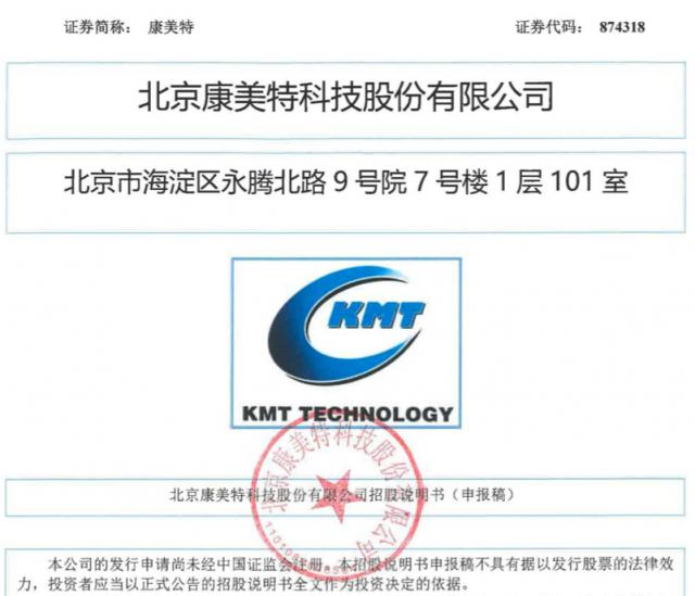 瑞财经 严明会 6 月 24 日本,北京康美特科技有限公司(以下简称康美特)北交所 IPO 被接受,保荐机构广发证券,保荐代表哈馨,李英杰,会计师事务所为容诚会计师事务所。