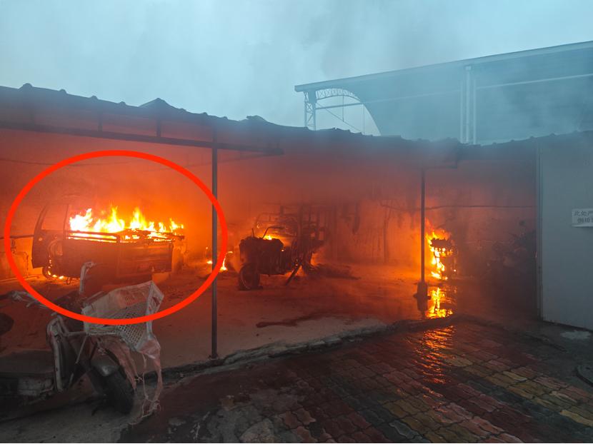 原题:火案追踪|绵阳某小区车棚着火,车棚秒变“火场”!