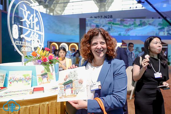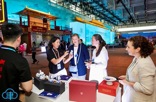 来自世界各地的嘉宾对中国文化表现出浓厚的兴趣 , 赏泥人张彩塑,杨柳青年画 , 品尝十八街麻花,狗不理馒头,煎饼果子 , 感受茶道,制瓷技巧 , 许多展台前都排起了长队。来自天津霍元甲学校的学生带来的武术表演、《西厢记》戏曲表演等都引起了阵阵掌声。
