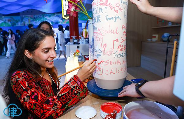 瓦内萨来自荷兰特文特大学。 · 埃弗斯在瓷器展台前停留了很长时间 , 并且在工作人员的邀请下 , 用荷兰语写下了一个瓶形素坯上的“晚上好”。“我第一次参加天津夏季达沃斯论坛。 , 这里我很喜欢 , 这是因为可以和许多中国年轻人交流。"她对记者说 , "我参观了天津的古文化街。 , 为家人购买纪念品。也是沿着海河散步 , 看见许多历史建筑 , 这段经历的确很棒 ! "
