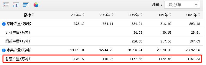 这个数据也意味着,除了国产香蕉之外,我国每年还要进口一些香蕉来实现国产香蕉的消费。