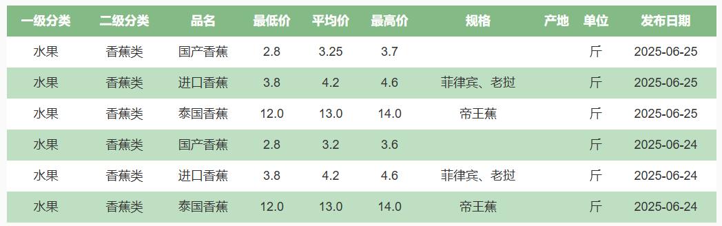 据北京新发地农产品批发市场最近发布的数据显示,国产香蕉确实比较便宜,平均价格在3.2元/斤左右。