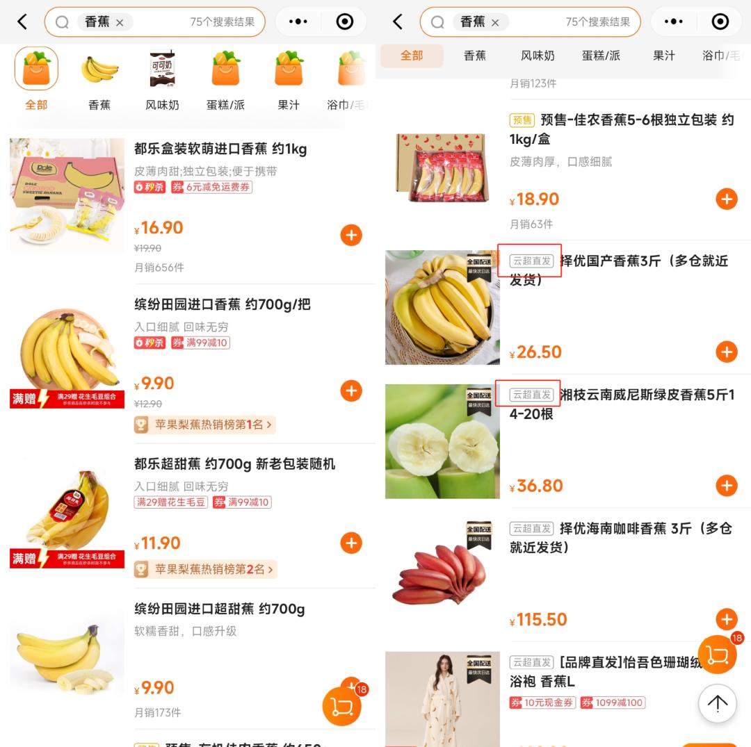 丁咚杂货店还表示,目前平台销售的香蕉主要来自菲律宾。购买香蕉等水果时,主要参考标准是质量达标,供应稳定性高。