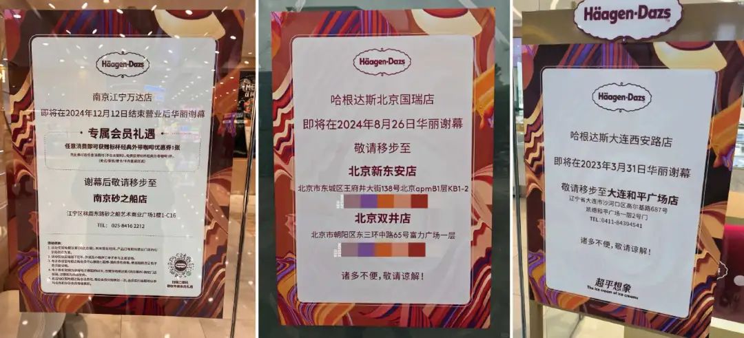 2023年以来,哈根达斯先后关闭了中国市场的几家门店,北京、上海、大连等城市的代表性门店相继退出,泰州、南宁等城市的哈根达斯门店甚至没有痕迹。根据哈根达斯的官方小程序,截至2025年6月,内地哈根达斯的门店数量只有250多家,比巅峰时期的400多家门店减少了近一半。许多消费者在社交平台上感慨:“还没有攒够钱来实现‘哈根达斯自由’,它就悄然消失了。”