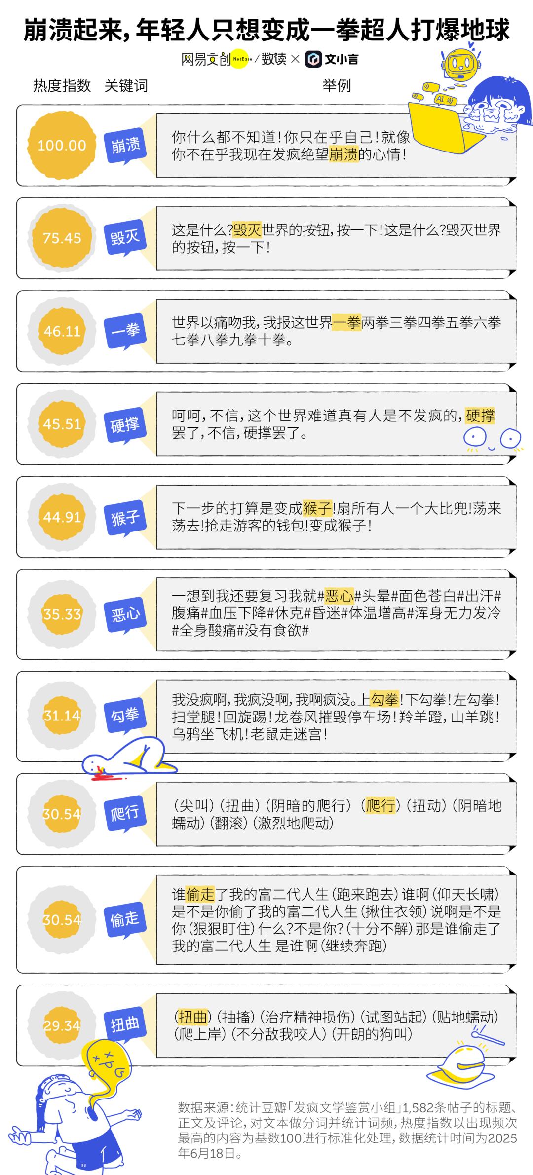 对于年轻人来说,摧毁的另一面是重建,而“疯狂”的另一面是排毒,以便更好地生活。无论是“疯狂文学”还是现实中的“疯狂”,都不仅是情绪的发泄,也是年轻人在法律范围内最微妙的抵抗力。