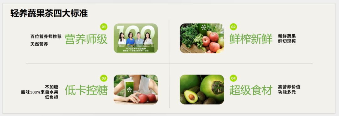 在饮料方面,奈雪的茶推出了包括“每日果蔬瓶”和“果蔬酸奶昔”在内的各种“轻养鲜果茶”。从销售业绩来看,这两个系列的产品在市场上竞争激烈。
