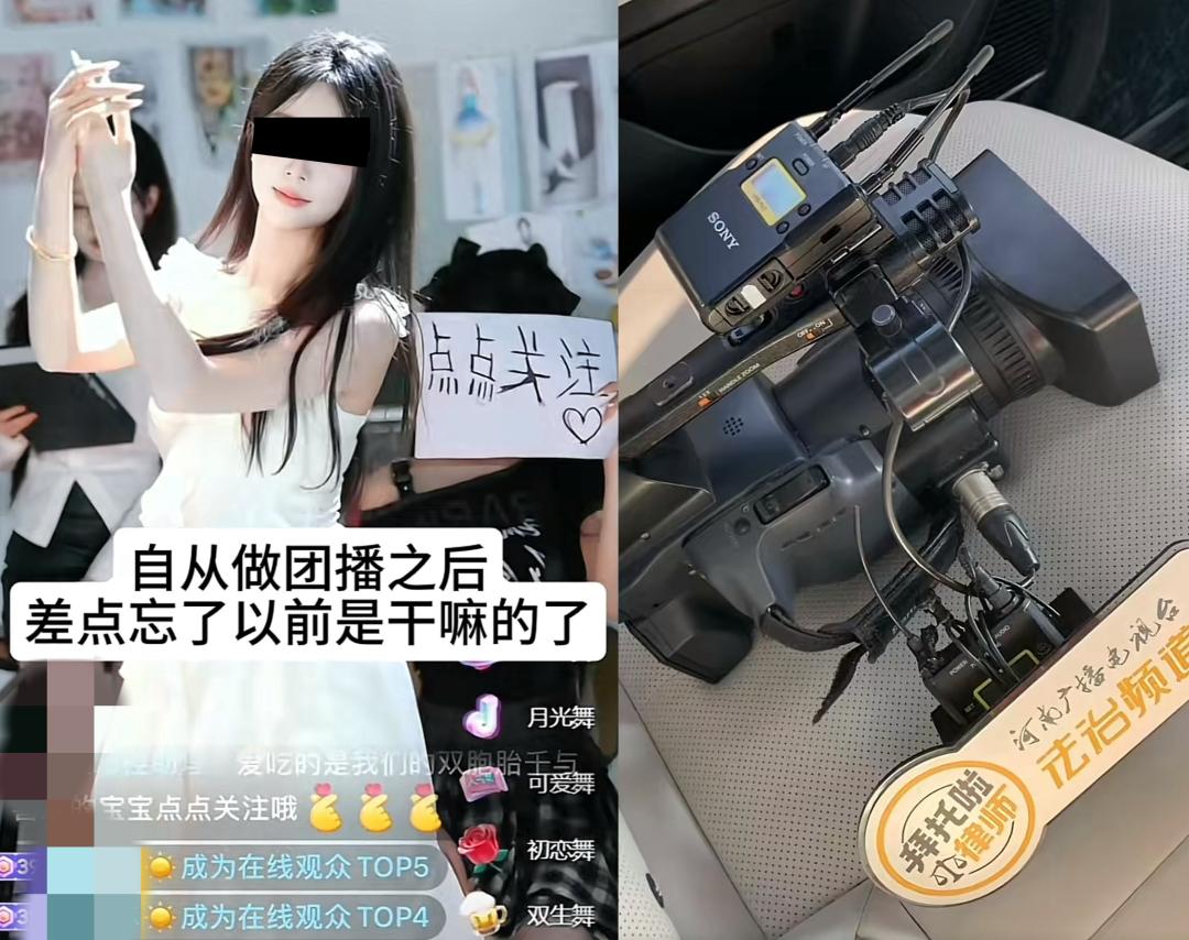 在河南法治频道当过记者的夏夏不冰,过去曾深入参与实地报道,也因工作认真负责收获过群众送来的锦旗,如今却在镜头前穿着白裙为观众跳团播流行舞。曾是CCTV制片人、参与过2023年央视春晚制作的悠米,也将利落的马尾放下,转身走进团播直播间。