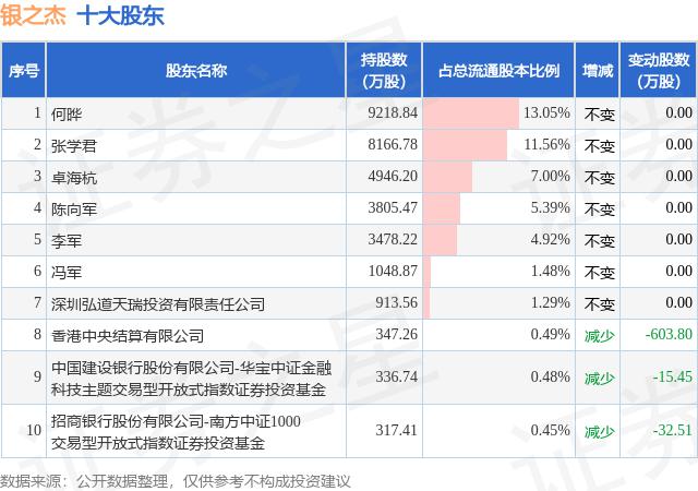 根据银之杰 2025 第一季度报告公布的十大股东详细信息如下: