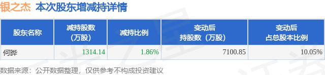 六月二十六日,银之杰宣布股东减持1314.14万股。