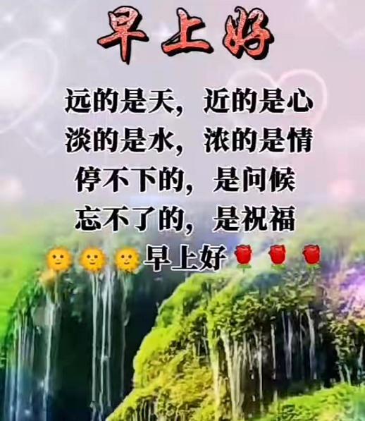 缘分如金,相守不替;友谊如缎,不断相连;时间不老,我们会长存;日复一日的相思就像相遇!早上很美!抬头挺胸,70多岁就像松林!心情舒畅,寻找快乐的人,岁月更年轻!每天互相道好日子!祝我们永不衰老!早上好,吉祥!