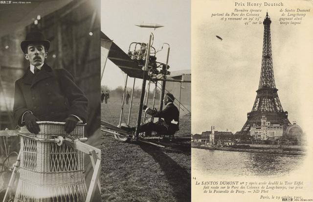 阿尔伯特 · 山度士 · 杜蒙于 1901 年度飞船飞越埃菲尔铁塔(右)