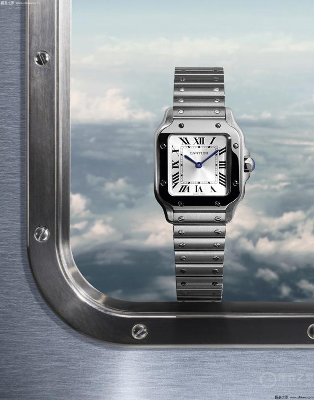 Santos 它在钟表史上占有重要地位,除了开启了从怀表到手表的新时代,时尚的设计语言也是划时代的——在广泛使用圆形怀表的时代,方形造型是第一个开启的。或许巴黎城市建设的黄金阶段无处不在的机械钢结构激发了卡地亚的灵感。表壳的圆边、一体成型的弧形表耳、固定表圈和表壳的螺丝(有点像飞机机身的铆钉)大胆突出,营造出独特的工业感和机械魅力,兼具简约的审美和基本功能。作为一款专门为飞行员设计的手表,自由、洒脱、吸引天空、挑战时间观念、突破地球重力的无畏精神,已经成为一种深深植根于手表基因的手表。