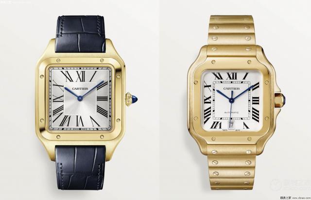 日前,Santos de Cartier 系列与 Santos-Dumont 这个系列发布了新作品。先来看看 Santos de Cartier 除了目前正在销售的大尺寸之外,系列 47.5 X 39.8mm 还有中号尺寸 41.9 X 35.1mm 表款外,推出 34.5 X 27mm 小尺寸。