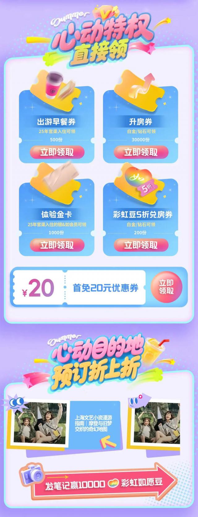 这是一种“游戏化” 将“夏季早订低至”的会员特权设计与“线上线下并行”相结合, 7 “折叠”和暑假热门目的地周边策略有效刺激了暑假订单的提前锁定。根据第一次旅行如家的内部数据,活动期间如愿豆的利用率和相关预订转化率都有明显提高。